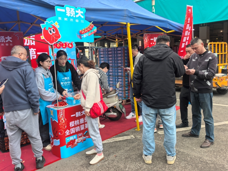 4月3日-4月4日,国民爆款鲜果品牌「一颗大」携旗下高品质樱桃番茄,走进无锡朝阳水果市场,举办主题路演推广活动,以丰富的互动体验、优质的产品展示,为市场客商会员及广大消费者带来一场春日鲜果盛宴。  活动现场布置亮眼,以红、蓝为主色调的主题展板醒目呈现 “樱桃番茄 全国销量第一” 的品牌实力,搭配趣味互动装置、产品展示区,营造出热烈的活动氛围。颗颗饱满红润、酸甜多汁的一颗大樱桃番茄,凭借自然长成的优质口感,收获广大消费者的一致好评。  本次路演同步推出专属进货福利:活动期间一次性进货10件一颗大系列产品,即可参与抽奖,好礼有限、先到先得,有效激发了商户的进货热情,进一步拓宽了产品在本地市场的流通渠道,更高效搭建起品牌、商户与消费者的三方对接平台。在活动促进下,作为一颗大品牌在市场独家经销商的供应商沈金河4月3日单日交易量达18.37吨,环比上日增长89.19%,充分彰显了品牌路演活动对市场交易的强劲拉动作用。此次亮眼成绩,不仅直观体现了一颗大樱桃番茄在本地市场的超高认可度,更印证了朝阳水果市场以品牌化活动赋能商户经营、激活流通活力的显著成效。  未来,市场将持续优化供应链服务,重磅推出更多精彩纷呈的主题营销、品牌推介、产地直采等全年度特色活动,以多元活动赋能交易提档升级,全力推动市场交易体量与客商品牌影响力双提升,打造更具竞争力的品牌化农产品交易平台,为市民带来更多全球优质鲜果,助力区域农产品流通高质量发展。 (供稿:张柯宇) |