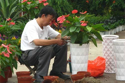 群众进入朝阳花卉市场植物区既可尽情欣赏,也可各取所需,按质论价,当面议价成交,买回家中作为家庭点缀。