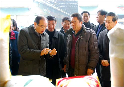 徐副市长一行还来到专门经销东北大米的商铺前,仔细询问东北大米的产地、品种、价格情况,当得知这些优质东北大米在无锡市场很受欢迎时,他高兴地向这位客商表达感谢和新年祝福。并希望各位客商一定要把好商品安全关,为无锡提供更多优质放心的商品。
