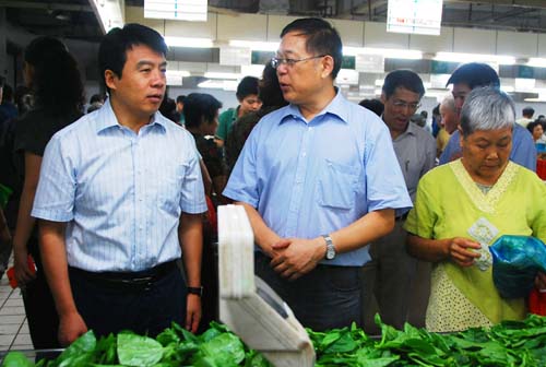 9月5日,无锡市副市长史立军率市物价局局长蔡大钢及物价局副调研员金伟祖等市领导来到无锡朝阳集团考察平价商店建设情况。考察团一行先后考察了天惠超市学前街店、朝阳店以及朝阳农贸市场。朝阳集团董事长张海良、总经理杨兴德热情接待了来访领导,并就朝阳集团在平价商店建设方面所作的主要工作进行了汇报。