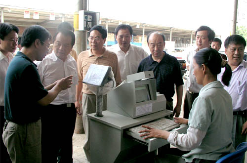 朝阳股份公司总经理钱韧、副总经理王汉如向省领导介绍了朝阳公司抓好蔬菜基地建设,并运用电子手段,建立蔬菜检测档案、实现与基地的联网,做好蔬菜的市场准入工作,确保蔬菜等农产品的食用安全。省领导还绕有兴趣地参观了市场的网络电子秤结算系统。