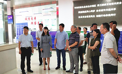 来访一行参观考察了蔬菜、水果两大市场、检测中心、结算中心、冷库、北二库、粮油市场等。张董向来访客人介绍了市场近年来的建设发展情况,以及在食品安全溯源、信息化平台建设等方面的相关举措,得到了来访客人的高度赞许。