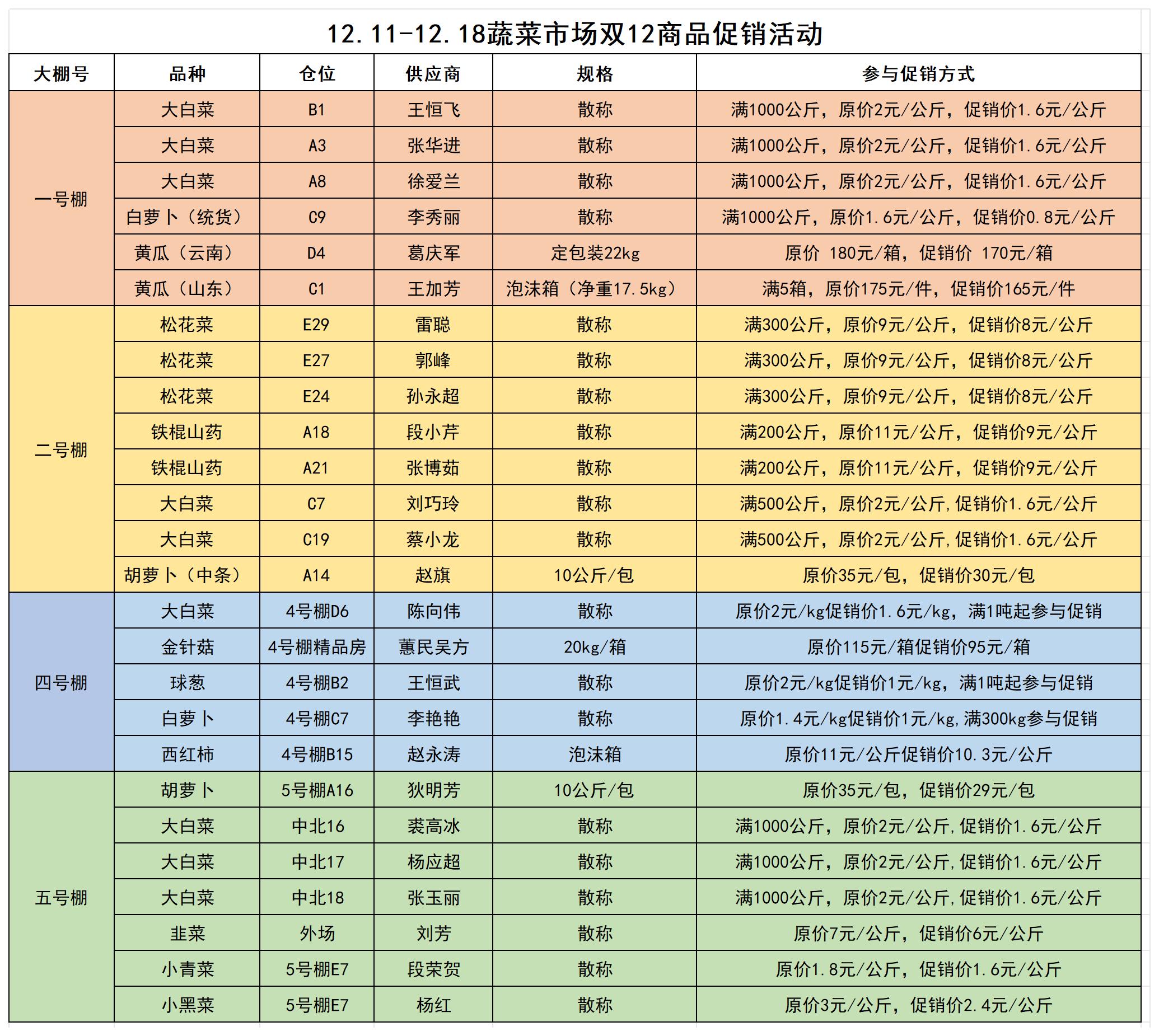 本次双十二活动,全场蔬果福利拉满:满减直降、买就送豪礼、抄底折扣,让采购成本一降再降!冬日时令尖货应有尽有:清甜多汁的砂糖橘、脆甜爽口的冰糖心苹果、爆汁香甜的耙耙柑、甜沁心脾的甘蔗、清爽酸甜的脐橙、浓香扑鼻的香蕉,还有各类新鲜蔬菜,近百家优质供应商产地直供,货源充足、品质在线,满足您的一站式采购需求! 冬日生意旺季,备货就是抢商机!锁定朝阳农产品大市场双十二狂欢购,用实在的优惠、靠谱的品质、贴心的服务,为您的冬日生意注入强劲动力。现在来场,解锁多重专属福利,让每一笔采购都划算省心,收获满满! 亲爱的会员朋友们,这个双十二,让朝阳与您并肩,抢抓黄金采购期,用新鲜蔬果引爆消费热潮,让盛夏的财富热度延续到寒冬,每一笔生意都赚得盆满钵满!