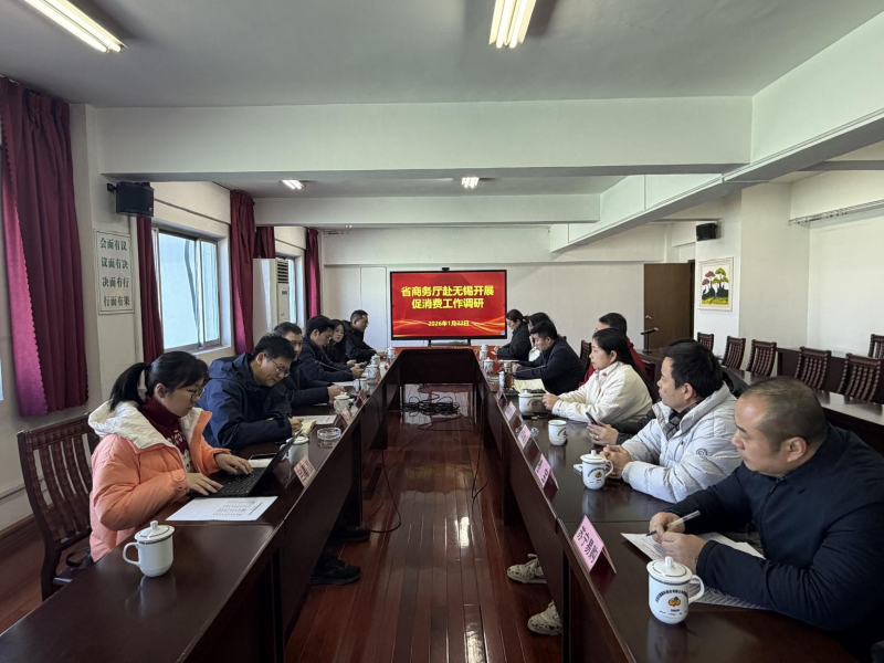 1月22日,江苏省商务厅运行处四级调研员项胜成带队一行4人,在无锡市商务局副局长钟渊陪同下,莅临朝阳农产品大市场开展促消费专项调研,无锡9家企业代表参加调研及座谈。朝阳股份总经理朱健祥热情接待了来访领导。